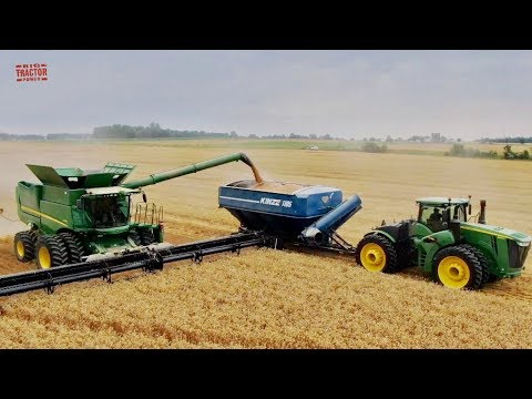 In this video we spend time in the field during the 2019 wheat harvest with a John Deere 9420R 4wd tractor and Kinze 1105 Grain Cart running with class 9 John Deere S790 combines. Viewers will have a birds eye view of the big harvesting machines as they see and hear all the farming action. Connect with Big Tractor Power @ http://www.bigtractorpower.com E-mail contact@bigtractorpower.com See More Great Tractor Videos - Subscribe ➜ https://www.youtube.com/bigtractorpower Share this Video: ➜ https://youtu.be/5UJnbTftT9I