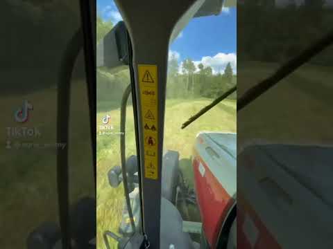 Farmer girl is driving a 6 meter john deere harvester for the first time